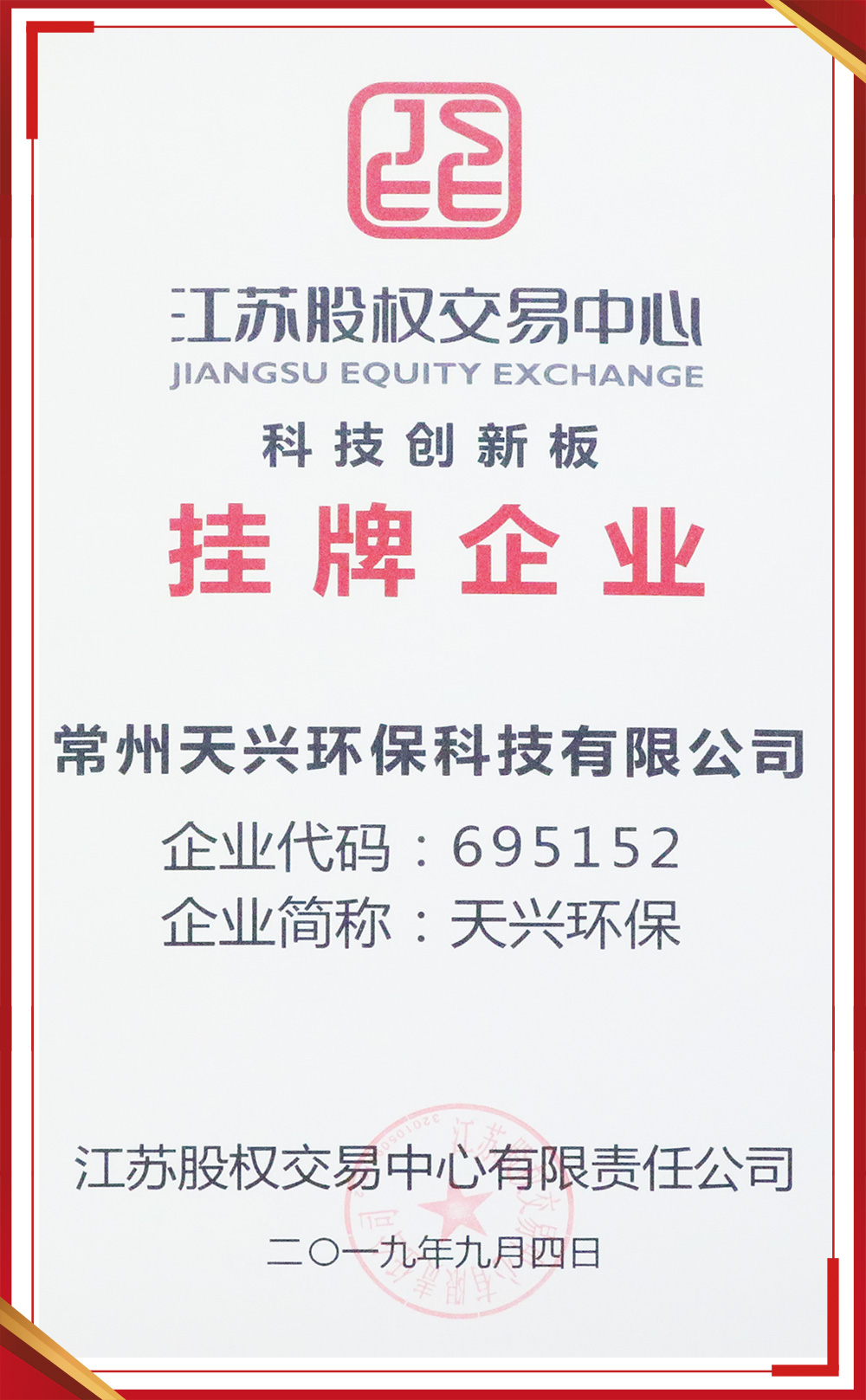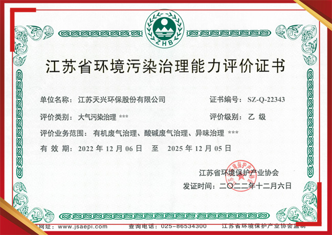江蘇省環(huán)境污染治理能力評價證書
