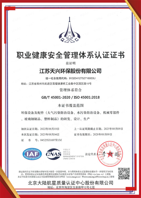 職業(yè)健康安全管理體系認(rèn)證證書