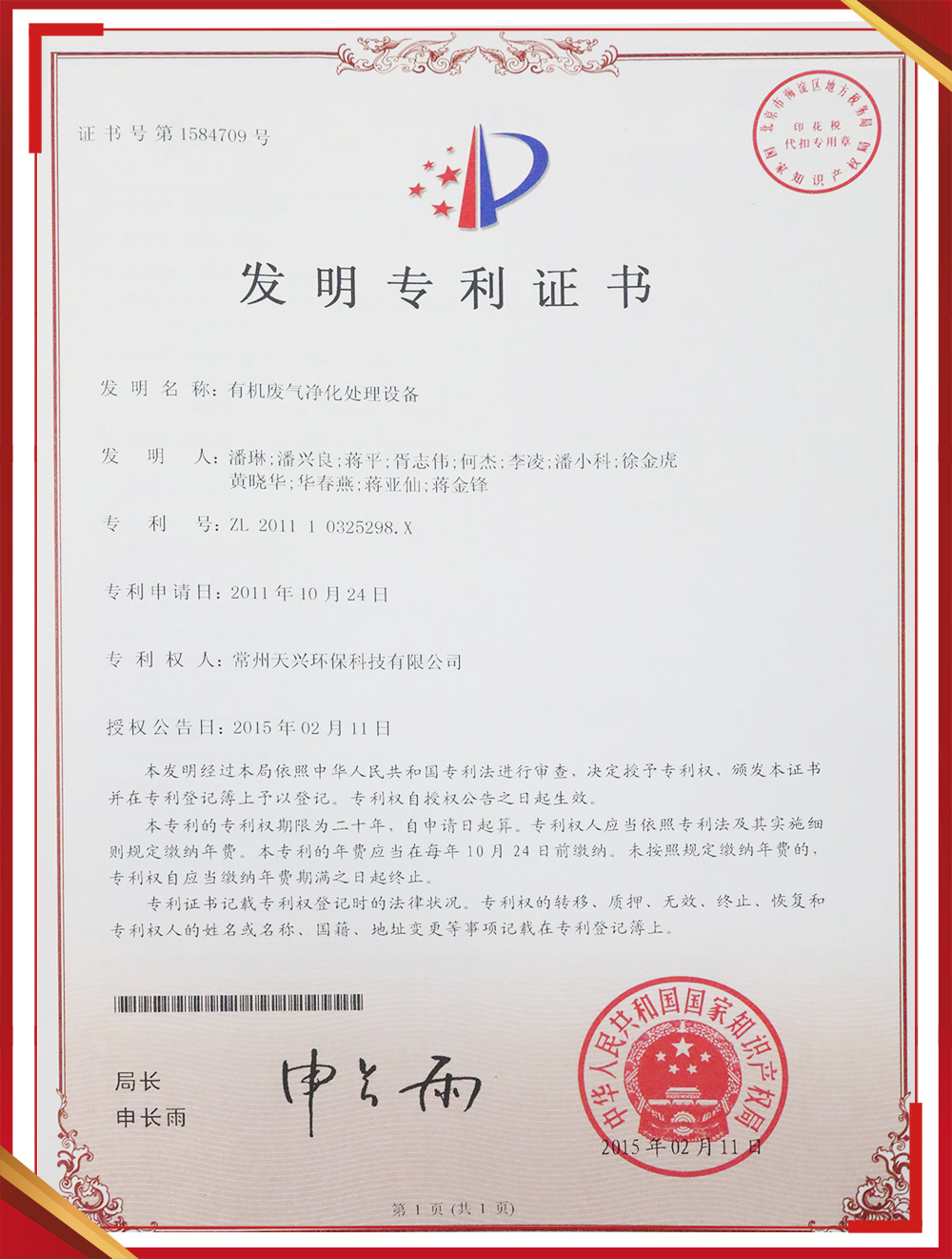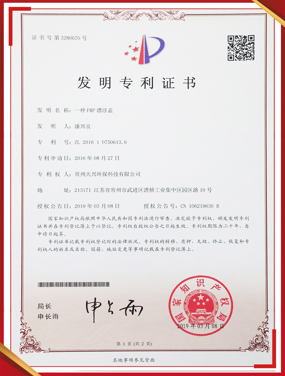 發(fā)明專利證書