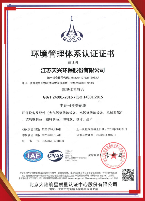 環(huán)境管理體系認(rèn)證證書